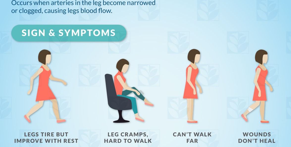 Decreased blood flow decreases the amount of oxygen available to the tissues, which can lead to pain, non-healing ulcers and infections in the limbs and ultimately tissue death called gangrene. If untreated, the affected limb may need to be amputated.